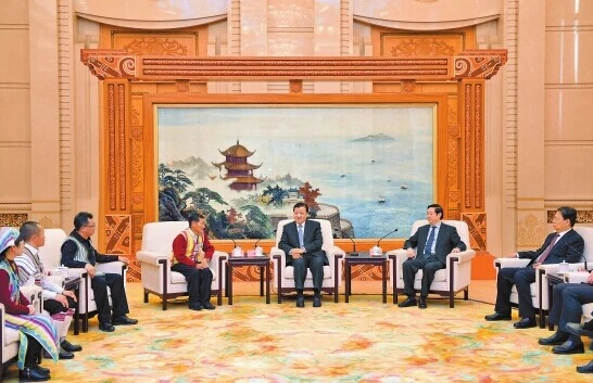 昨日,高德榮同志先進事跡報告會在北京人民大會堂舉行。報告會前,中共中央政治局常委、中央書記處書記劉云山看望報告團成員,向高德榮表示親切慰問。新華社記者 謝環馳 攝
