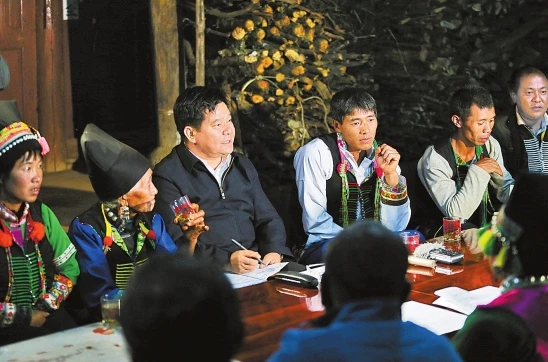 15日晚,李紀恒在施甸縣哈寨村委會楊順道家與群眾進行民情懇談。記者 張彤 攝
