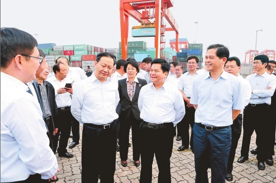 近年來,廣西抓住絲綢之路經濟帶和21世紀海上絲綢之路建設的窗口期,著力抓好基礎設施、產業升級、港口物流建設重大項目,全面提升對外開放水平。處在北部灣經濟區核心的濱海城市——欽州先后獲得了中國—馬來西亞欽州產業園、欽州保稅港區等一系列國家級政策平臺支持,戰略地位實現飛躍。3月23日,在廣西學習考察的云南黨政代表團來到了欽州。