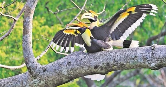 圖為云南銅壁關自然保護區內的雙角犀鳥。