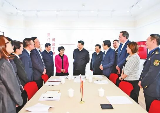 臨近傍晚,習(xí)近平來(lái)到長(zhǎng)寧區(qū)虹橋街道古北市民中心考察調(diào)研。古北社區(qū)居住著來(lái)自50多個(gè)國(guó)家和地區(qū)的居民。習(xí)近平聽(tīng)取社區(qū)開(kāi)通社情民意直通車(chē)、服務(wù)基層群眾參與立法工作等情況介紹,并同正在參加立法意見(jiàn)征詢(xún)的社區(qū)居民代表親切交流。他強(qiáng)調(diào),你們這里是全國(guó)人大常委會(huì)建立的基層立法聯(lián)系點(diǎn),你們立足社區(qū)實(shí)際,認(rèn)真扎實(shí)開(kāi)展工作,做了很多接地氣、聚民智的有益探索。人民代表大會(huì)制度是我國(guó)的根本政治制度,要堅(jiān)持好、鞏固好、發(fā)展好,暢通民意反映渠道,豐富民主形式。