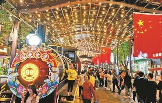國慶假期,昆明百年老街南強街格外熱鬧,文藝表演、小吃美食、品酒擼串,讓各地游客流連忘返。東南亞風味美食攤位前門庭若市,傳統民俗手工藝品、傳統服飾等小攤被游客圍得水泄不通,百年老街煙火氣十足。隨著夜經濟升溫,南強街逐漸被打造成集非物質文化遺產、新中式文化創意、街頭藝術集成、民宿文化展示于一體的夜間經濟示范街區,成為本地市民和外地游客來昆明品味獨特“夜文化”,感受豐富“夜生活”的地方。(記者 雷桐蘇)