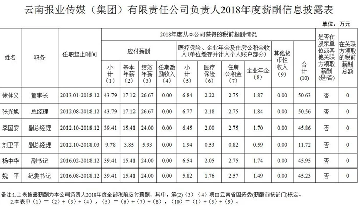 云報(bào)傳媒(集團(tuán))有限責(zé)任公司負(fù)責(zé)人2018年度薪酬信息披露