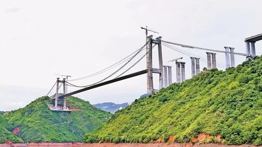 9月5日,建(個)元高速公路紅河特大橋順利合龍。大橋全長1366米,橋面寬25米,距南沙水庫庫區水面188米,大橋主塔分別位于建水縣和元陽縣,為雙向4車道。該橋是首座跨越紅河的高速公路懸索特大橋,預計于2021年3月正式完工。(記者 李樹芬 攝影報道)