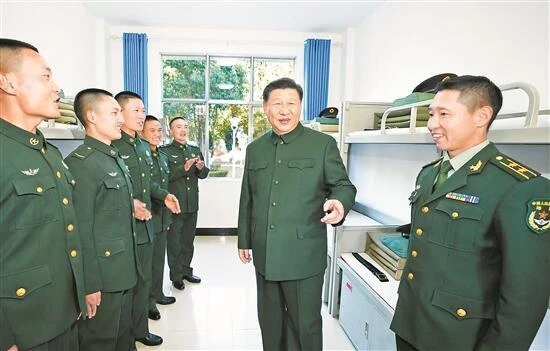 習近平對正在邊防一線執(zhí)行任務的官兵十分牽掛,專門通過視頻慰問了有關部隊。某掃雷排爆大隊任務分隊是“排雷英雄戰(zhàn)士”杜富國所在部隊,多次出色完成邊境掃雷任務。習近平充分肯定他們?yōu)閽叱谆?、確保邊疆人民幸福安寧作出的重要貢獻,勉勵他們過細做好安全防護,精心組織掃雷排爆,為黨和人民再立新功。某邊防分隊在界樁執(zhí)勤點前整齊列隊,向習主席報告執(zhí)勤情況??吹竭叿拦俦耧枬M、士氣高昂,習近平很高興。他表示,大家辛苦了,你們戰(zhàn)斗在管邊控邊第一線,使命光榮、責任重大,要保持高度戒備狀態(tài),嚴密組織邊防執(zhí)勤,守護好邊境地區(qū)安全穩(wěn)定和人民群眾生命財產(chǎn)安全。
