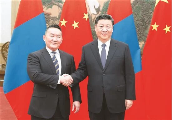 習近平指出,中蒙是山水相連的友好鄰邦。中方高度重視發展中蒙關系,始終將蒙古國作為中國周邊外交的重要方向。中方愿同蒙方一道,鞏固政治互信,加強共建“一帶一路”合作,共同推動構建命運共同體,更好造福兩國人民,為地區和平穩定發展作出貢獻。