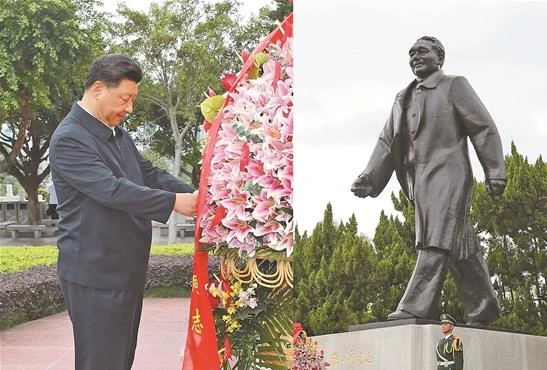 10月14日下午,習近平總書記來到蓮花山公園,向鄧小平同志銅像敬獻花籃。新華社記者 王曄 攝