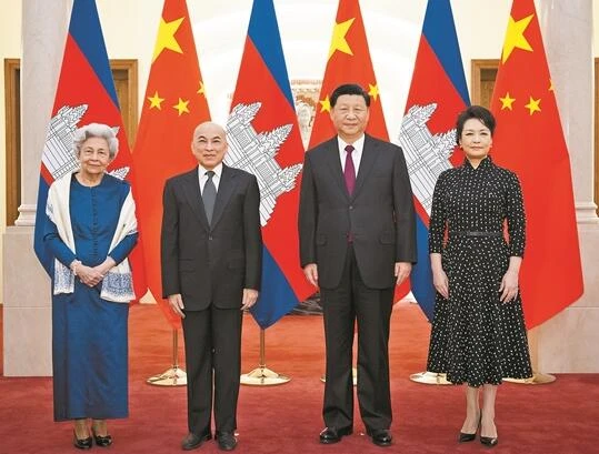 西哈莫尼表示,習近平主席和夫人給予我們隆重禮遇,使我們深切感受到中國人民對柬埔寨人民的深情厚誼。我剛剛專程訪問了陜西延安,對中國共產黨領導中國人民自強不息、艱苦奮斗取得的偉大成就感到由衷敬佩,也深切體會到習近平主席以人民為中心的思想。我愿同習近平主席一道,繼承和發揚兩國老一輩領導人締結的深厚友誼,譜寫柬中友好合作的新篇章。衷心祝愿中國在習近平主席領導下取得新的更大發展。