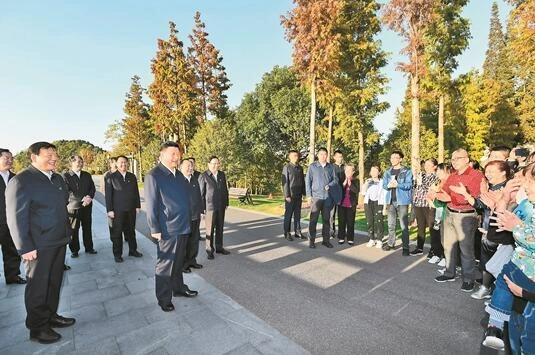 11月12日下午,習近平總書記在南通市五山地區濱江片區考察時,同市民群眾親切交流。 新華社記者 謝環馳 攝