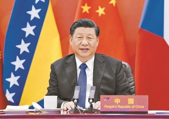 2月9日,國家主席習近平在北京以視頻方式主持中國-中東歐國家領導人峰會,并發表題為《凝心聚力,繼往開來 攜手共譜合作新篇章》的主旨講話。 新華社記者 黃敬文 攝