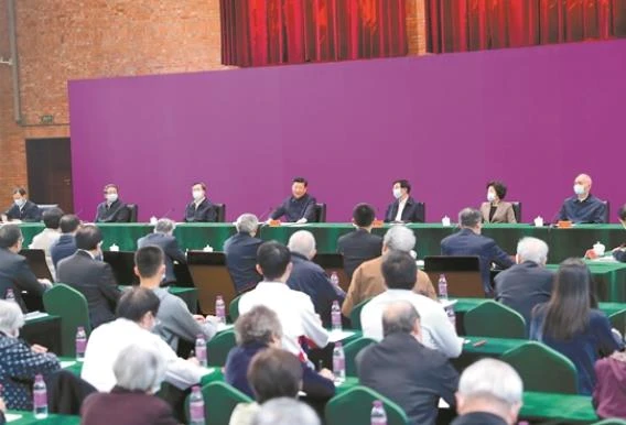 4月19日,在清華大學建校110周年校慶日即將來臨之際,中共中央總書記、國家主席、中央軍委主席習近平來到清華大學考察。這是習近平出席師生代表座談會并發表重要講話。新華社記者 鞠鵬 攝