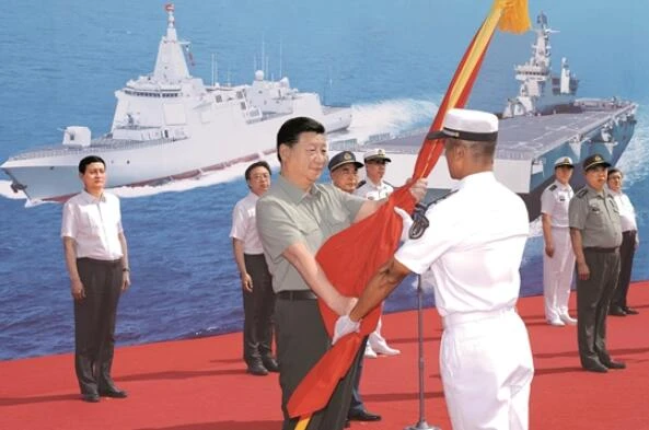 習近平為海軍三型主戰艦艇授旗