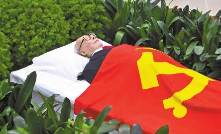 12月5日,江澤民同志的遺體安臥在鮮花翠柏叢中,身上覆蓋著鮮紅的中國共產黨黨旗。 新華社記者 謝環馳 攝