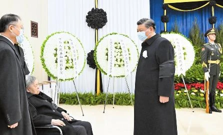 12月5日,江澤民同志的遺體在北京火化。這是習近平向江澤民同志的夫人王冶坪和親屬表示深切慰問。 新華社記者 李學仁 攝