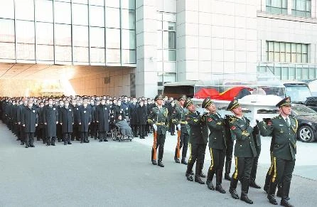 10時20分,8名禮兵荷靈,伴著哀樂緩緩走出告別室。習近平等護送江澤民同志的遺體上靈車。