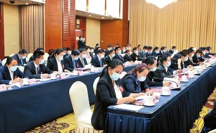 代表團(tuán)團(tuán)長(zhǎng)王寧主持會(huì)議,副團(tuán)長(zhǎng)王予波、石玉鋼、李小三參加。