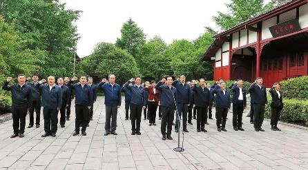 6月5日,參加省領導干部主題教育讀書班的全體學員在扎西會議會址重溫入黨誓詞。記者 雷桐蘇 顧彬 攝