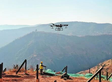 今年以來,華電集團云南區域開辟出光伏組件無人機空中運輸通道,加速光伏等新能源建設。華電云南區域近年開工建設了42個風光電新能源項目,項目多位于地形地勢復雜的陡坡山地,無人機吊運光伏組件一天的完成量相當于12名人工的工作量,大幅節約了時間和人力成本。(通訊員 楊萬翠 記者 李繼洪 攝)