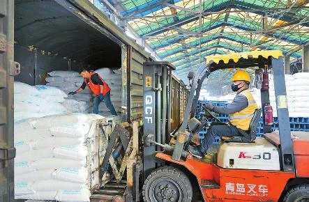 立春時節,春耕備耕工作陸續展開。云南水富云天化有限公司全力抓好生產,保障春耕化肥供應,目前每天將2400余噸化肥發運云貴川等多個省份。圖為工人在水富火車站裝載運往紅河、大理、保山、昆明等地的化肥。(記者 謝毅 通訊員 狄廷秀)