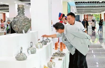 近日,鶴慶縣舉辦“銀都鶴慶”文化藝術周銀器精品展,集中展示了來自中國地質大學、上海大學上海美術學院、南京藝術學院、云南藝術學院等高校師生與鶴慶多位非遺大師制作的530余件純銀作品,讓市民游客零距離感受銀器的非遺之美、盡享銀都魅力。記者 李麗 攝