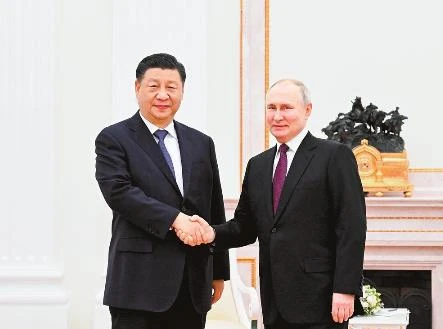 普京熱烈歡迎習近平對俄羅斯進行國事訪問,對習近平連任中國國家主席再次表示熱烈祝賀。普京表示,過去十年來,中國各方面發展都取得令世人矚目的偉大成就,這歸功于習近平主席的卓越領導,也證明了中國國家制度和治理體系的優越。我堅信,在習近平主席堅強領導下,中國必將繼續發展繁榮,順利實現各項既定宏偉目標。在雙方共同努力下,近年來俄中關系在各領域都取得了豐碩成果。俄方愿同中方繼續深化雙邊務實合作,加強在國際事務中的溝通協作,推動世界多極化和國際關系民主化進程。