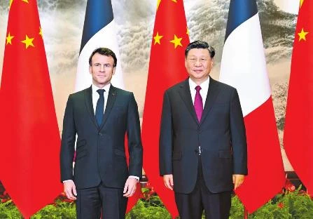 習近平歡迎馬克龍再次訪華。習近平指出,當今世界正在經歷深刻的歷史之變,中法作為聯合國安理會常任理事國和具有獨立自主傳統的大國,作為世界多極化、國際關系民主化的堅定推動者,有能力、有責任超越分歧和束縛,堅持穩定、互惠、開拓、向上的中法全面戰略伙伴關系大方向,踐行真正的多邊主義,維護世界和平、穩定、繁榮。