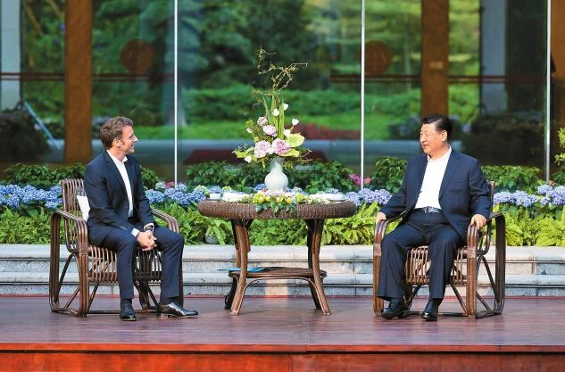 習近平指出,這兩天,我們在北京和廣州進行了深入、高質量交流,增進了了解和互信,為今后中法兩國在雙邊和國際層面的合作明確了方向。很高興我們在中法、中歐關系以及很多國際和地區(qū)問題上有很多相同或相似看法,這體現(xiàn)了中法關系的高水平和戰(zhàn)略性。我愿同你繼續(xù)保持密切戰(zhàn)略溝通,推動中法全面戰(zhàn)略伙伴關系提升至新高度。