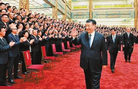 上午10時30分,習近平等來到人民大會堂金色大廳,全場響起長時間的熱烈掌聲。習近平等向代表們揮手致意,同大家親切交流并合影留念。