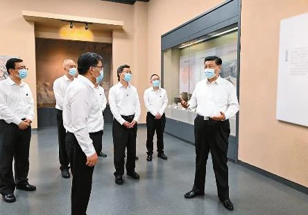 5月16日下午,中共中央總書記、國家主席、中央軍委主席習(xí)近平在前往陜西西安主持中國—中亞峰會途中,在山西運(yùn)城博物館考察。新華社記者 李學(xué)仁 攝