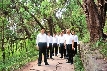 25日下午,習近平首先來到廣元市劍閣縣考察了翠云廊。這里是古代關中平原通往四川盆地古蜀道的重要路段,有迄今保存最完好的古代人工栽植驛道古柏群。習近平聽取古蜀道發展歷程、翠云廊整體情況介紹,沿古道步行察看千年古柏長勢,詳細詢問歷史上植柏護柏情況。他指出,這片全世界最大的人工古柏林,之所以能夠延續得這么久、保護得這么好,得益于明代開始頒布實行“官民相禁剪伐”、“交樹交印”等制度,一直沿襲至今、相習成風,更得益于當地百姓世代共同守護。這啟示我們,抓生態文明建設必須搭建好制度框架,抓好制度執行,同時充分調動廣大人民群眾的積極性主動性創造性,鞏固發展新時代生態文明建設成果。臨行前,他囑咐當地負責同志,要把古樹名木保護好,把中華優秀傳統文化傳承好。