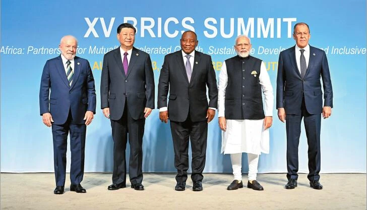新華社約翰內斯堡8月23日電(記者 倪四義 應強 魯向明) 當地時間8月23日上午,金磚國家領導人第十五次會晤在約翰內斯堡杉藤會議中心舉行。南非總統拉馬福薩主持會晤。中國國家主席習近平、巴西總統盧拉、印度總理莫迪和俄羅斯總統普京(線上)出席。五國領導人圍繞“金磚與非洲:深化伙伴關系,促進彼此增長,實現可持續發展,加強包容性多邊主義”主題,就金磚合作及共同關心的重大國際問題深入交換意見,達成廣泛共識。