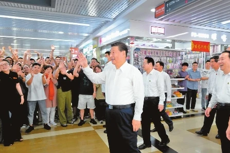 隨后,習(xí)近平來到義烏國際商貿(mào)城考察。他通過電子屏幕實時了解商貿(mào)城運營及“義新歐”班列運行情況,并走進市場同商戶、小企業(yè)主代表親切交流,詳細詢問市場行情。他強調(diào),義烏小商品闖出了大市場、做成了大產(chǎn)業(yè),走到這一步很了不起,每個人都是參與者、建設(shè)者、貢獻者。商貿(mào)城要再創(chuàng)新輝煌,為拓展國內(nèi)國際市場、暢通國內(nèi)國際雙循環(huán)作出更大貢獻。