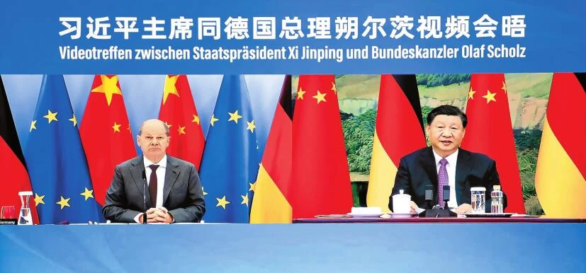 習(xí)近平強(qiáng)調(diào),當(dāng)前國(guó)際形勢(shì)正在發(fā)生很大變化,地緣沖突加劇,經(jīng)濟(jì)復(fù)蘇乏力,冷戰(zhàn)思維回潮。中國(guó)和德國(guó)都是負(fù)責(zé)任的大國(guó),不僅要發(fā)展好雙邊關(guān)系、做合作共贏的表率,更要捍衛(wèi)國(guó)際秩序和多邊主義,攜手應(yīng)對(duì)全球性挑戰(zhàn)。中歐關(guān)系關(guān)乎世界格局穩(wěn)定和亞歐大陸繁榮,值得雙方全力維護(hù)好、發(fā)展好。中國(guó)將歐洲視為全面戰(zhàn)略伙伴和多極化中的重要一極。希望德國(guó)推動(dòng)歐盟秉持市場(chǎng)化和公平原則,同中方一道,維護(hù)公平市場(chǎng)競(jìng)爭(zhēng)和自由貿(mào)易,維護(hù)全球產(chǎn)業(yè)鏈供應(yīng)鏈穩(wěn)定。