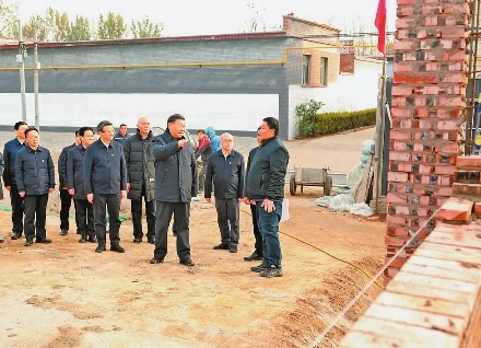 11月10日,中共中央總書記、國家主席、中央軍委主席習近平在北京、河北考察災后恢復重建工作。這是10日下午,習近平在河北保定涿州市刁窩鎮萬全莊村房屋重建施工現場考察。 新華社記者 鞠鵬 攝