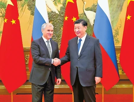 沃洛金表示,在習近平主席和普京總統的戰略引領下,俄中關系達到歷史最好水平。俄羅斯國家杜馬各黨派在支持發展對華友好關系上擁有高度共識。俄方堅定奉行一個中國政策,堅定支持中方維護國家主權和領土完整。俄方愿同中方加強兩國立法機構和黨際交流合作,積極落實兩國元首重要共識,深化人民友誼和互信,為俄中新時代全面戰略協作伙伴關系持續發展提供有力法律保障,為兩國關系發展作出貢獻。
