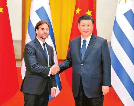 習近平指出,2023年是中烏建交35周年和烏拉圭加入共建“一帶一路”倡議5周年。建交35年來,兩國始終堅持相互尊重、平等相待、合作共贏,各領域交流合作蓬勃發展。特別是面對新冠疫情,兩國守望相助、同心抗疫,中烏戰略伙伴關系得到升華。中方愿同烏方一道,以建立全面戰略伙伴關系為新起點、新坐標,提升雙邊關系水平,豐富兩國合作內涵,將中烏關系打造成為不同體量、不同制度、不同文化國家團結合作的典范,更好服務各自國家發展,增進兩國人民福祉。