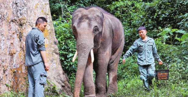 為了更好地保護生物多樣性,放歸阿寶勢在必行。阿寶是一頭公象,不依賴象群生活,同時,無人機、紅外熱成像等遠距離監測技術的發展,讓放歸阿寶有了技術支撐。2022年7月,有關部門決定啟動救助象回歸自然試驗,西雙版納亞洲象救護與繁育中心為放歸阿寶制定了詳細的放歸計劃。經過野化訓練,今年4月14日,工作人員對阿寶啟動分離野化訓練,切斷人為干預,讓它在野化訓練區內獨立活動。5月17日,有關部門決定對阿寶實施自然放歸。“監測畫面里,阿寶看上去長胖了,警惕性和野性都有所提升。經過糞便成分分析,阿寶采食的食物種類有100多種,與野生成年象已無異。”周晨浩說。