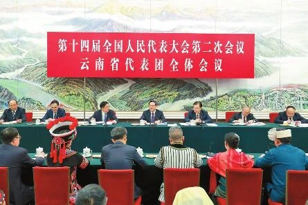 本報北京專電(記者 楊猛 張寅 瞿姝寧) 3月5日下午,出席十四屆全國人大二次會議的云南省代表團舉行全體會議,審議政府工作報告。