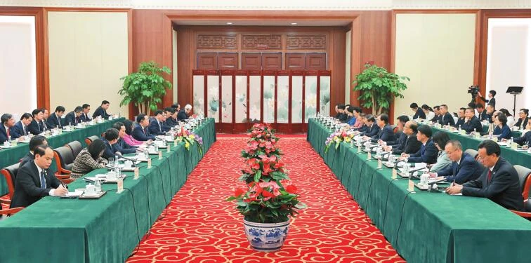 4月11日,省委書記、省人大常委會主任王寧在昆明會見越南國會主席王庭惠率領的代表團一行。 記者 雷桐蘇 陳飛 攝