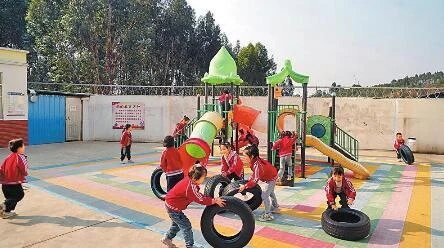 中寨幼兒園的孩子們在校園里玩耍。