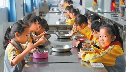 羊街中心完小學(xué)生在食堂用餐。