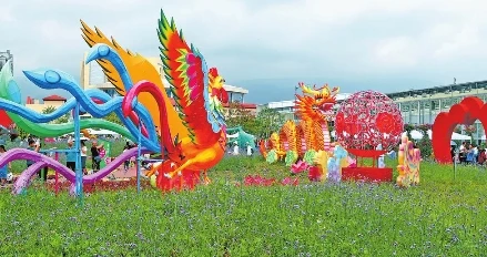 宜良縣端陽花街節上,“龍鳳呈祥”主題造景營造濃厚節日氛圍。記者 楊崢 攝