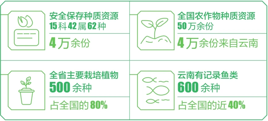農業現代化,種子是基礎。珍貴的種質資源,孕育著農業未來的希望,積蓄著育種無限的動力。云南是全球生物多樣性最豐富的地區之一,全省主要栽培植物500余種,占全國的80%;72個畜禽資源入選《國家畜禽遺傳資源品種名錄》,數量居全國首位;有記錄的魚類600余種,占全國淡水魚類種數的近40%。省委、省政府高度重視種質資源保護利用工作,把建設種質資源保護大省作為種業振興的首要目標,發揮資源優勢、聚合多方力量,持續加強農業種質資源的有效保護和高效利用。