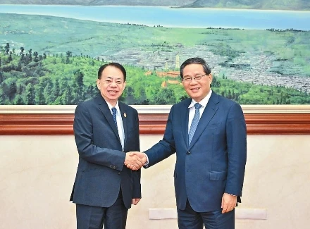 11月6日下午,國務院總理李強在昆明會見來華出席大湄公河次區域經濟合作第八次領導人會議的亞洲開發銀行行長淺川雅嗣。新華社記者 殷博古 攝
