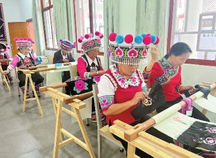 在楚雄彝族自治州,像金瑞瑞、黃永蘭一樣依靠彝繡技藝成功創業、就業的繡娘越來越多,這得益于楚雄州對彝繡這項有著1700多年歷史的國家級非遺項目的活化傳承利用。目前,全州從事彝繡產業的繡娘已達5.7萬人,2022年全州彝繡產業實現增加值2.45億元,2023年實現增加值2.75億元,帶動2000多名殘疾繡娘就近就業。
