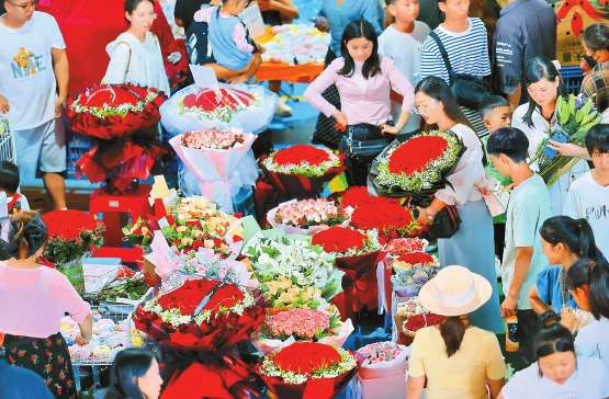 七夕來了,昆明斗南花卉交易市場鮮花交易量持續走高。昆明國際花卉拍賣交易中心數據顯示,從8月2日至7日,玫瑰花交易量由日均500多萬枝增加到800萬枝左右,總交易量達5500萬枝。