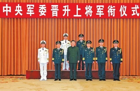 下午5時許,晉銜儀式在莊嚴的國歌聲中開始。中央軍委副主席張又俠宣讀了中央軍委主席習近平簽署的晉升上將軍銜命令。中央軍委副主席何衛(wèi)東主持晉銜儀式。