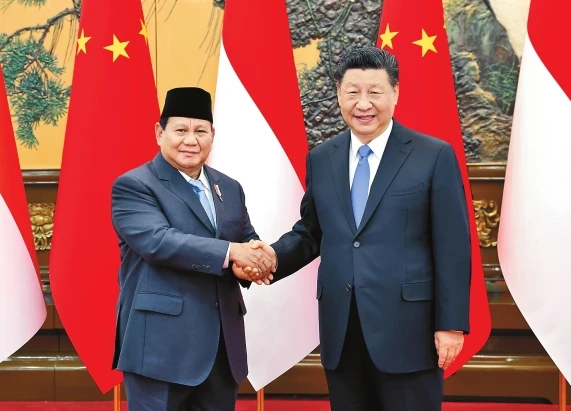 4月1日下午,國家主席習近平在北京人民大會堂同印尼當選總統普拉博沃舉行會談。新華社記者 姚大偉 攝