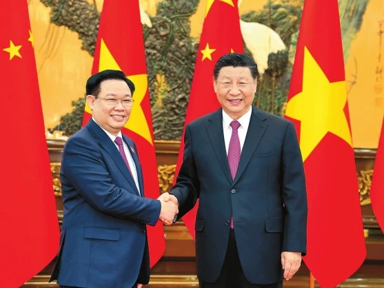 習近平強調,當前,國際和地區形勢發生深刻復雜變化,捍衛社會主義制度、維護國家穩定和發展,是中越雙方共同利益所在。雙方要以高水平互信鑄牢中越命運共同體意識,以高質量合作夯實中越命運共同體根基,以高度政治智慧推進中越命運共同體建設。中方愿同越方加強治黨治國理政經驗交流,發揮好中越雙邊合作指導委員會的統籌協調作用,加快推進共建“一帶一路”倡議同“兩廊一圈”戰略對接,豐富青年、友城等渠道交流。希望雙方立法機構深化各層級交流合作,加強立法監督經驗等互學互鑒,為增進兩國民間友好發揮重要作用。