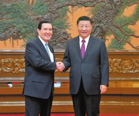 4月10日下午,中共中央總書記習近平在北京會見馬英九一行。 新華社記者 鞠鵬 謝環馳 攝